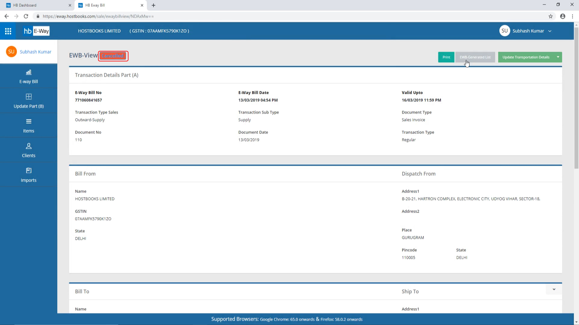 How to Cancel an E-Way Bill in HostBooks E-Way Bill Software?